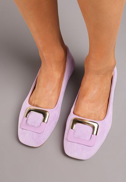 Fioletowe Płaskie Klasyczne Balerinki z Ozdobną Klamrą Nassnema