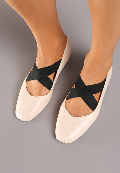 Beżowe Płaskie Balerinki Ozdobione Gumką Elizora