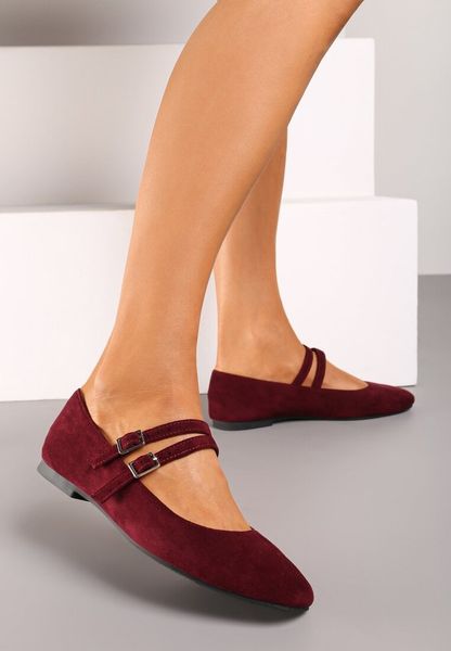 Bordowe Balerinki z Kwadratowym Noskiem z Ozdobnymi Paseczkami Nailone