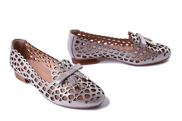 Czółenka letnie damskie. Naturalna skóra. Ażurowa cholewka. Miękka, skórzana wkładka. Wygodny obcas typu klocek.
