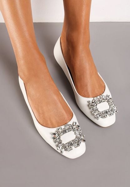 Białe Balerinki na Płaskiej Podeszwie z Metaliczną Ozdobą Oranivia