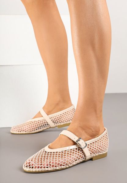 Beżowe Balerinki z Siateczki z Paskiem z Klamerką Artewi
