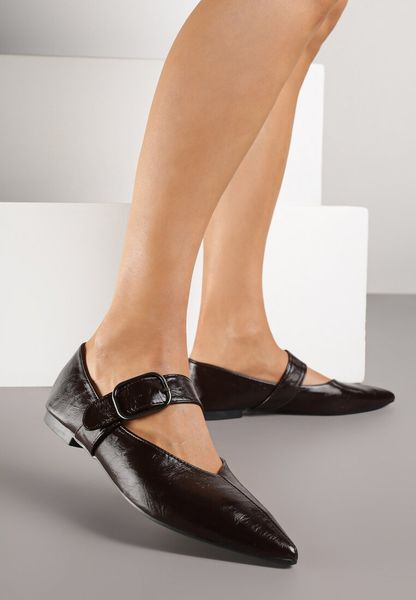 Ciemnobrązowe Balerinki w Stylu Mary Jane ze Szpiczastym Noskiem Nalivira