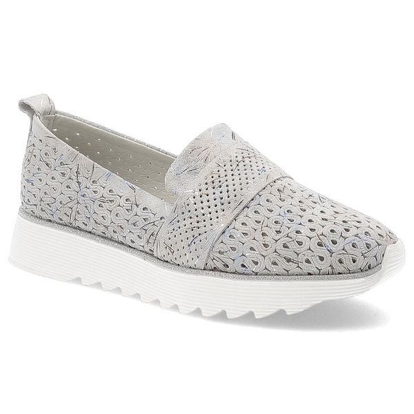Srebrne Półbuty S.Barski Obuwie Damskie Ze Skóry Naturalnej