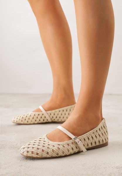 Jasnobeżowe Balerinki Ozdobione Ażurowym Motywem i Paskiem Nonaniassi
