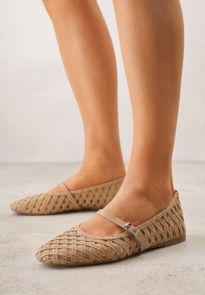 Beżowe Balerinki z Ażurowym Wzorem i Paskiem Astethera
