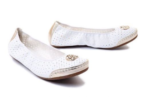 Baleriny damskie. Ażurowa cholewka. Miękka, skórzana wkładka. Elastyczna lamówka. Wygodna, kauczukowa podeszwa.