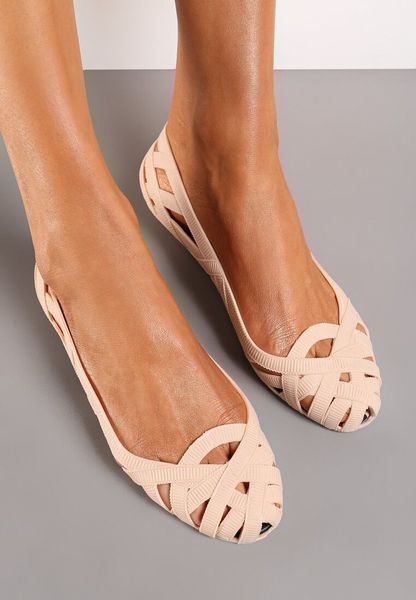 Beżowe Balerinki Ozdobione Wycięciami na Cholewce Sylaria
