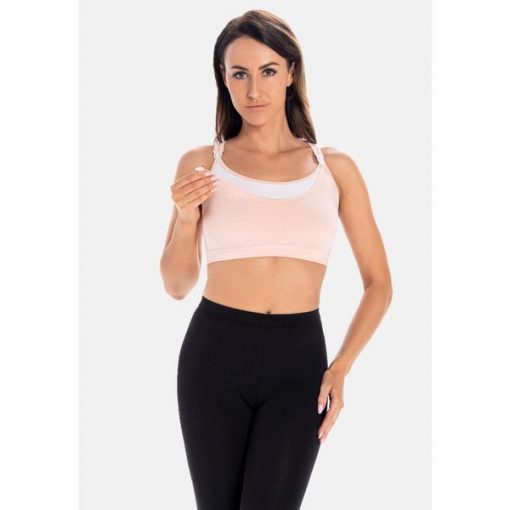 Jasnoróżowy Biustonosz Sportowy z Siateczką i Gorsetowym Zdobieniem Saliatessa