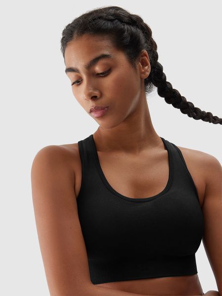 4F Biustonosz treningowy bezszwowy z niskim wsparciem damski – czarny XS/S