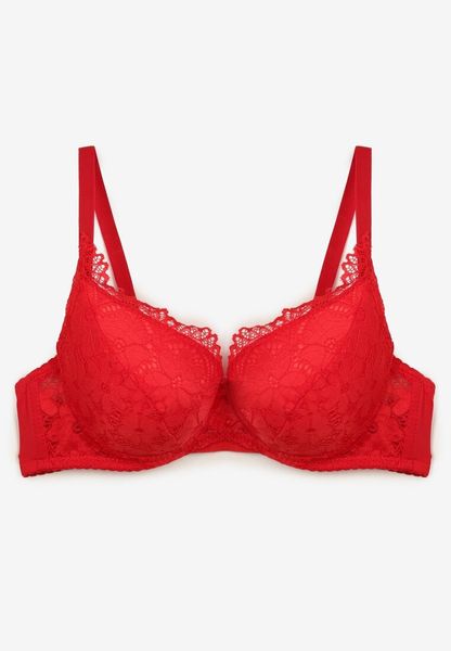 Czerwony Biustonosz z Usztywnianymi Miseczkami Ozdobione Koronką Pillnes