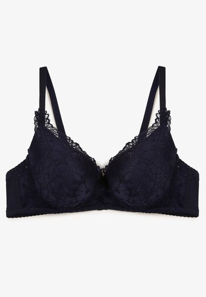 Granatowy Biustonosz z Usztywnianymi Miseczkami Ozdobione Koronką Pillnes