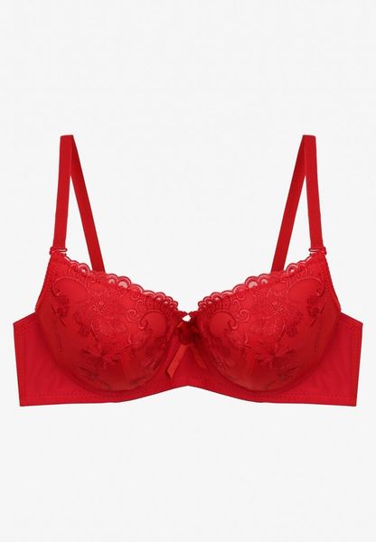 Czerwony Biustonosz Full Cup Pokryty Koronką Absuca