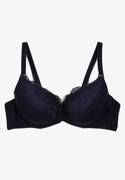 Granatowy Biustonosz z Usztywnianymi Miseczkami Wykończony Koronką i Regulowanymi Ramiączkami Accentia
