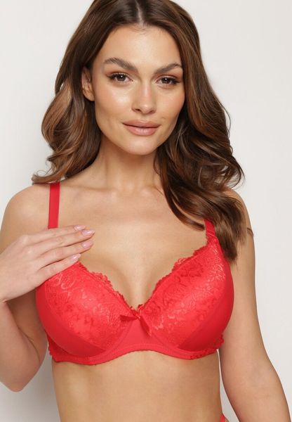 Czerwony Biustonosz Full Cup Ozdobiony Koronką i Kokardką Tenuta