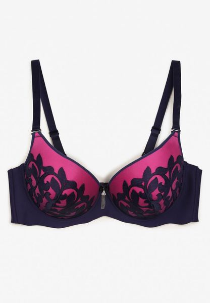 Granatowo-Fuksjowy Biustonosz z Miseczkami Full Cup i Koronką Timapel
