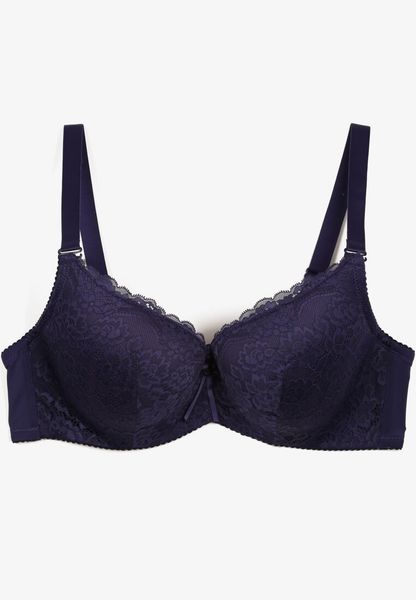 Granatowy Koronkowy Biustonosz Zapinany z Tyłu na Haftki na Regulowanych Ramiączkach Ellmira