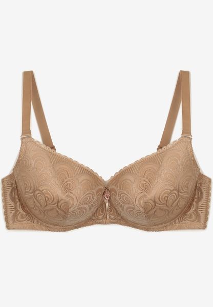 Ciemnobeżowy Biustonosz Koronowy Full Cup z Ozdobą między Miseczkami Danesea