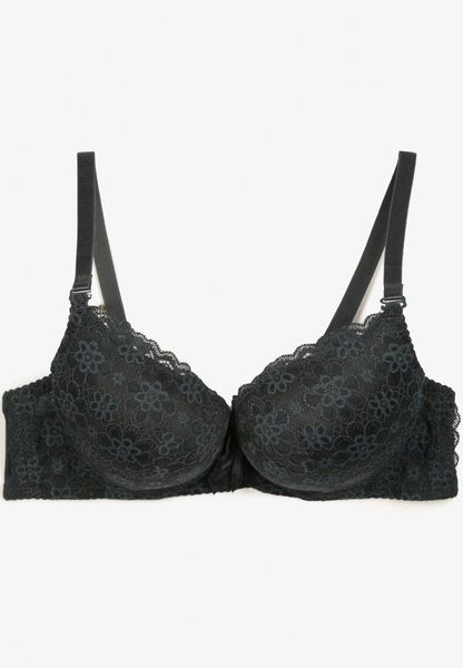 Ciemnozielony Biustonosz Push Up z Koronką w Kwiatki Walemia