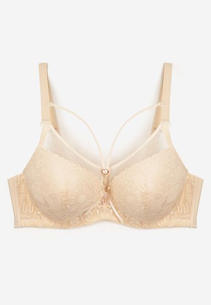 Beżowy Biustonosz Typu Full Cup z Koronką i Regulowanymi Ramiączkami Nestakate