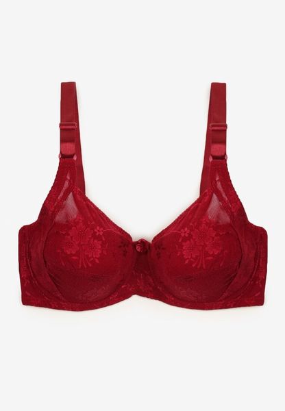 Bordowy Full Cup Biustonosz z Koronką Vikonie
