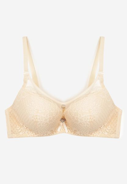 Beżowy Biustonosz Push-Up z Koronki Ozdobiony Metalową Aplikacją Arissta