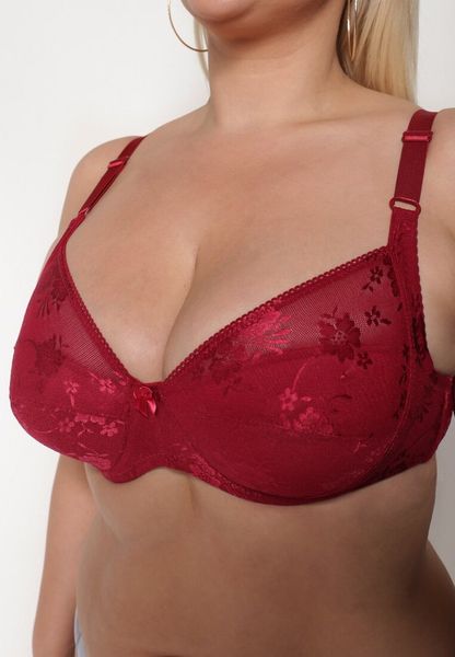 Bordowy Biustonosz z Koronki Full Cup z Regulowanymi Ramiączkami Dimela