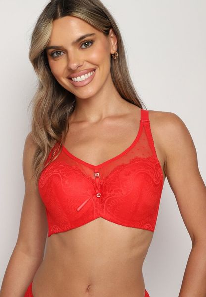 Czerwony Biustonosz Koronkowy z Usztywnionymi Miseczkami Fatinas