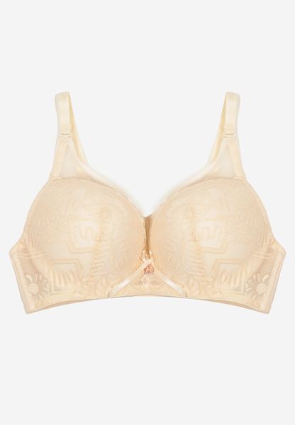Beżowy Biustonosz Full Cup Zdobiony Koronką Raviera