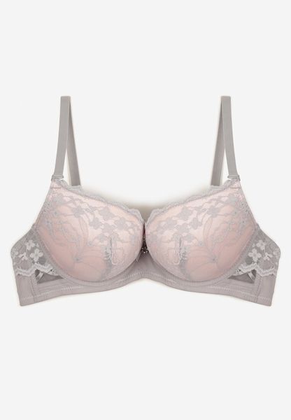 Szaro-Różowy Biustonosz Push Up Ozdobiony Koronką Sannel