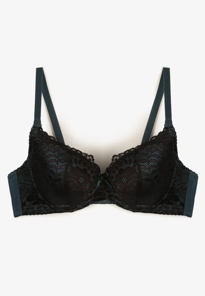 Ciemnozielony Koronkowy Biustonosz z Kwiatowym Motywem Nelamis