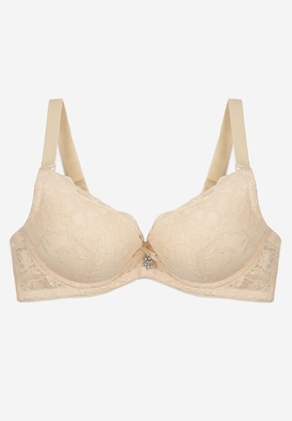 Jasnobeżowy Biustonosz Push Up Ozdobiony Koronką i Metaliczną Aplikacją Nelvinea