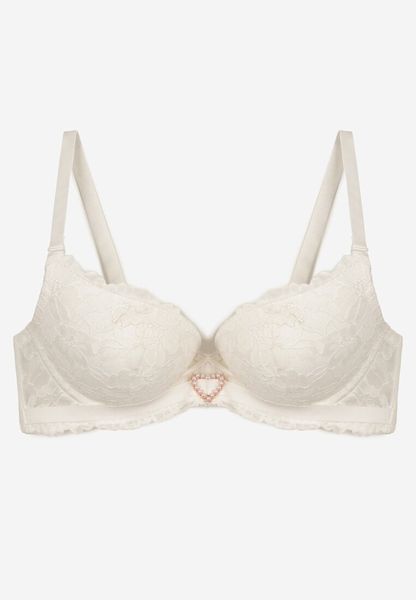 Jasnobeżowy Biustonosz Ozdobiony Koronką i Cyrkoniowym Sercem Fannel