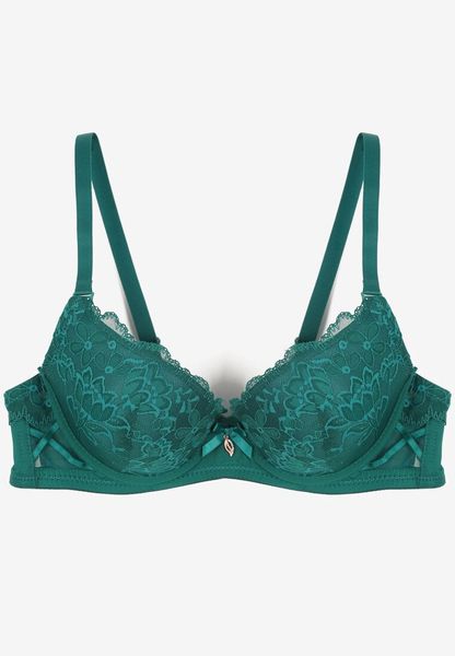 Zielony Koronkowy Biustonosz Ozdobiony Kokardką Ezanzee