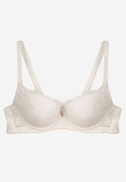 Jasnobeżowy Biustonosz z Koronką i Kokardką Amirio