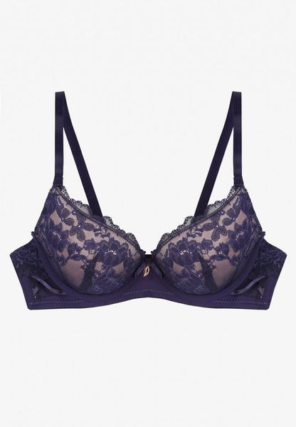 Granatowo-Różowy Koronkowy Biustonosz Ozdobiony Kokardką Ezanzee