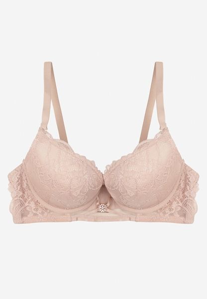 Różowy Koronkowy Biustonosz Push-Up z Metaliczną Ozdobą Aclenne