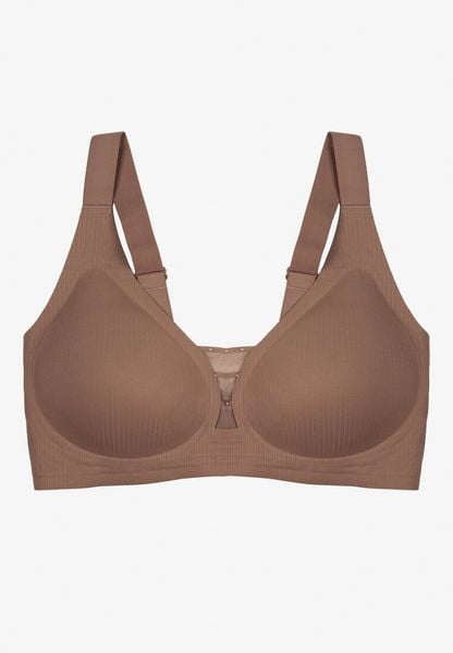 Ciemnobeżowy Biustonosz z Prążkowanego Materiału Ezimere
