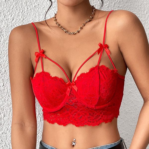 Biustonosz koronkowy bez fiszbin z kokardkami Hayriye