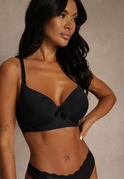 Czarny Biustonosz o Gładkim Wykończeniu z Kokardką Phiphise