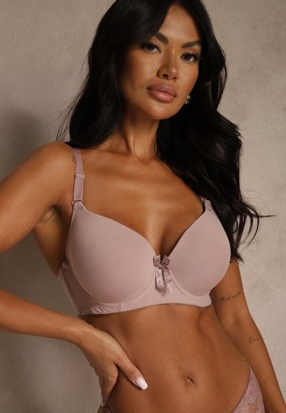 Jasnofioletowy Biustonosz o Gładkim Wykończeniu z Kokardką Phiphise