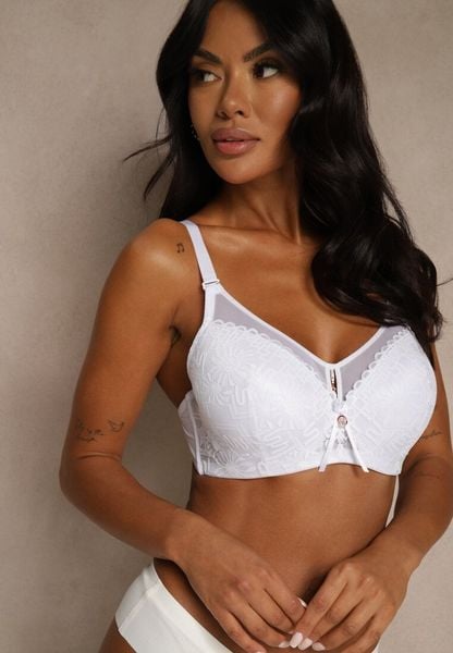 Biały Koronkowy Biustonosz Ozdobiony Przezroczystą Wstawką Acalinai