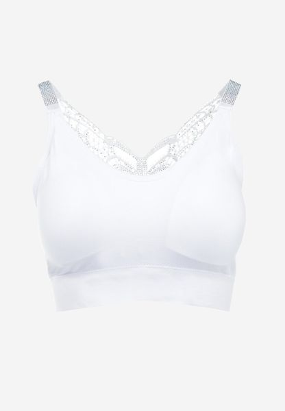 Biały Biustonosz na Szerokich Ramiączkach z Koronką w Cyrkonie Caduria
