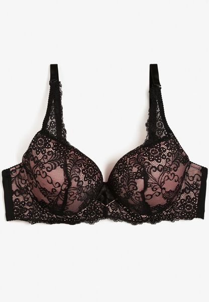 Czarno-Różowy Biustonosz Lekko Usztywniany z Koronką Labria