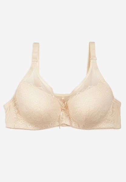Beżowy Biustonosz Full Cup z Koronką i Cyrkoniami Filipena