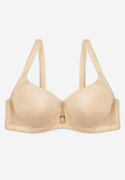 Beżowy Biustonosz Ozdobiony Koronką Full Cup Pasecia