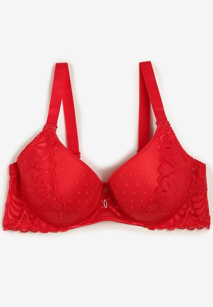 Czerwony Biustonosz Full Cup Pokryty Koronką Hiacinthia