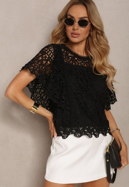 Czarna Koronkowa Bluzka w Stylu Boho Raspia