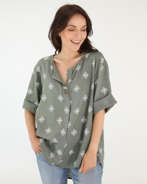 Wzorzysta bluzka z lnem