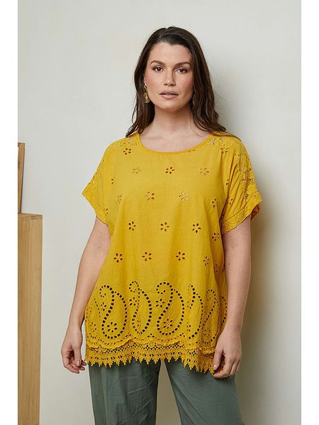 bluzki bez ramiączek bluzki bez kołnierzyka bluzki bez rękawów żółte bluzki bluzki ze sklepu limango.pl odzież damska curvy lady odzież damska limango.pl bluzki curvy lady bluzki z okrągłym kołnierzem